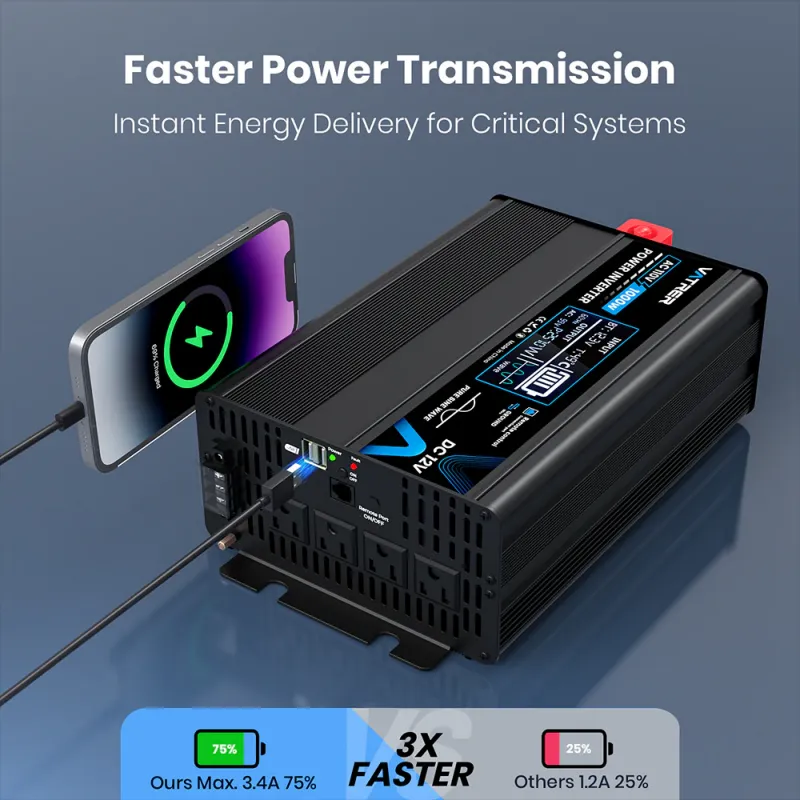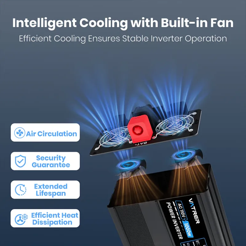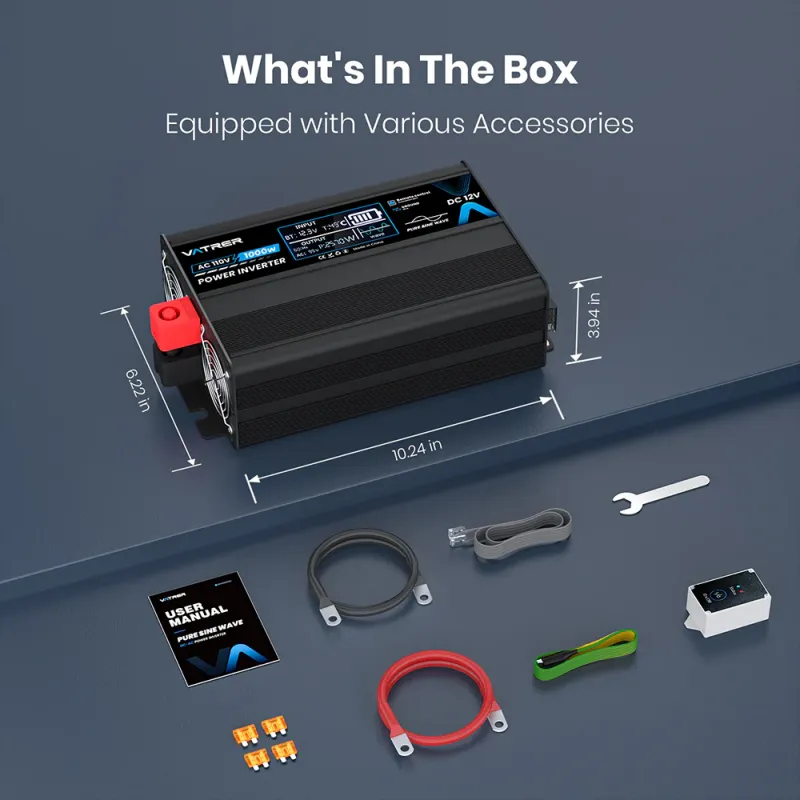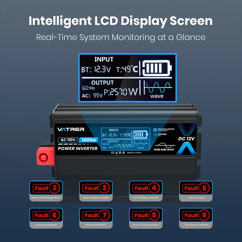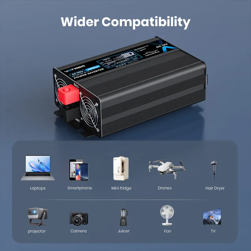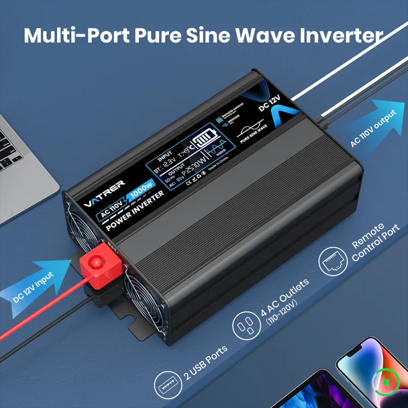 Vatrer 1000W Pure Sine Wave Inverter 12V DC to 110V/120V AC – Clean, Reliable Power Solution for RV, Solar, Marine, Home Backup & Off-Grid Systems