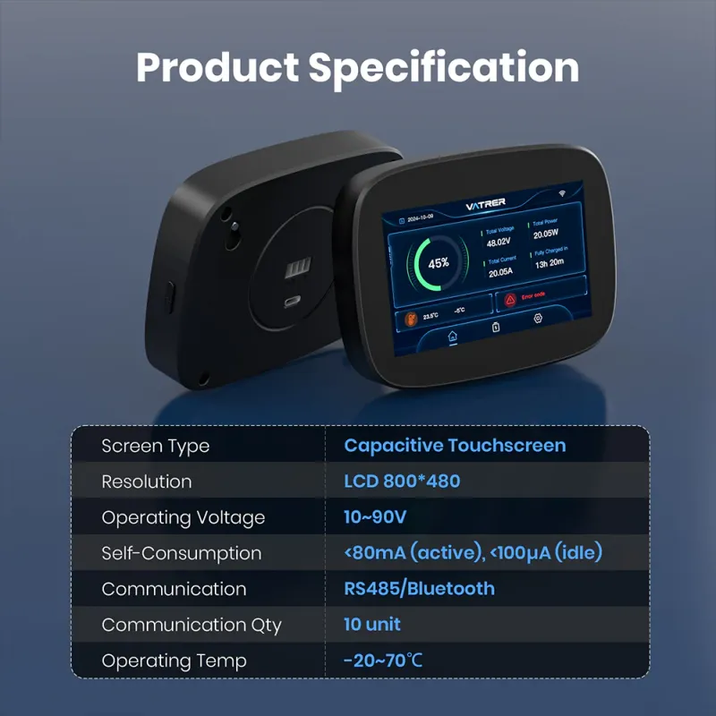 Product Description for Vatrer 10V-90V Bluetooth Lithium Battery Monitor