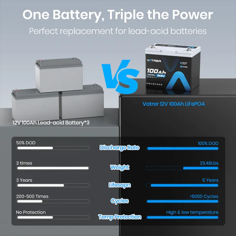 Vatrer 12V 100Ah Group 24 Low Temp LiFePO4 Deep Cycle Lithium Battery – True Cold-Weather Drop-In Replacement for Marine, RV, Solar & Off-Grid