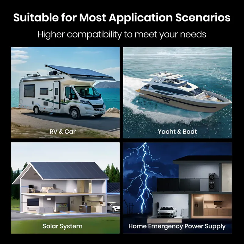 Key Features True Group 24 Dimensions – fits the exact same footprint as standard Group 24 lead-acid batteries. 100A Continuous / 200A Peak BMS – powers inverters, trolling motors, and winches without voltage sag. Low-Temp Charge Protection – automatically stops charging below 32°F to protect cells (discharge still works to -4°F). Bluetooth 5.0 Real-Time Monitoring – SOC, voltage, current, temperature, and health on your phone. 1280Wh Usable Capacity – full-day runtime for most 12V applications. Only 24.3 lbs – drops 40+ lbs vs lead-acid for better boat balance and RV handling. 6000+ Cycles at 80% DOD – lasts 8–10× longer than lead-acid. IP67 Waterproof & Shockproof – built for marine and rough off-road use. Fully Scalable – up to 4S4P (20.48kWh total) and drop-in compatible. Safe & Certified – UL-listed cells, 5-year warranty.