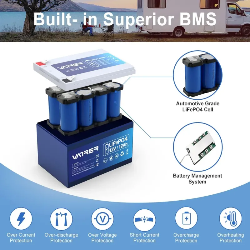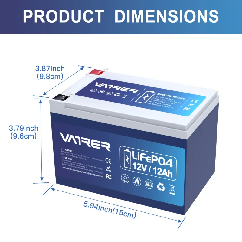 Product Description for Vatrer 12V 12Ah LiFePO4 Deep Cycle Battery