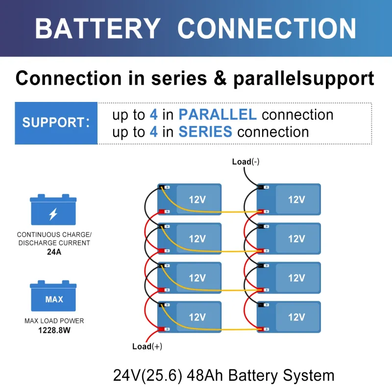 Specifications at a Glance Nominal Voltage: 12.8V • Capacity: 12Ah • Energy: 153Wh • Continuous Discharge: 30A • Peak Discharge: 60A (10s) • Max Charge Current: 12A • Efficiency: >99% • Self-Discharge: <3% per month • Dimensions: 5.94 × 3.86 × 3.74 in • Weight: 2.6 lbs • Terminals: F2 tabs • Enclosure: IP65 ABS • Certifications: UL1973 (cells), UN38.3, FCC, CE • Warranty: 5 years