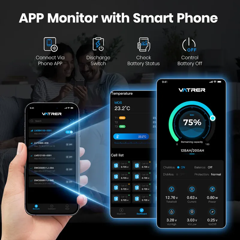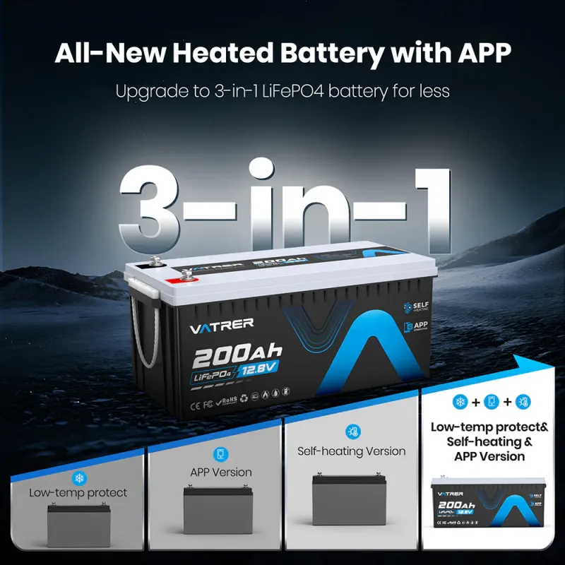 Product Description for Vatrer 12V 200Ah Bluetooth Self-Heating Lithium Battery 200A BMS