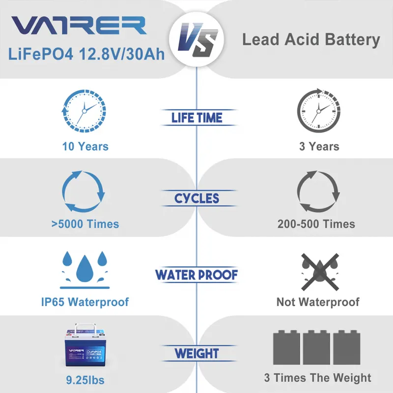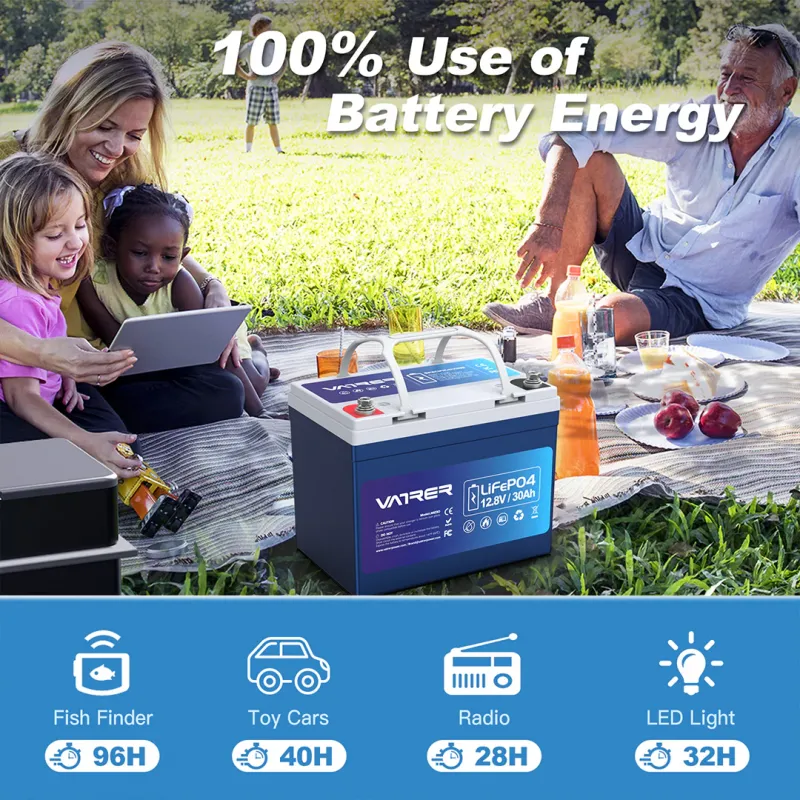 Product Description for Vatrer 12V 30AH LiFePO4 Lithium Rechargeable Battery