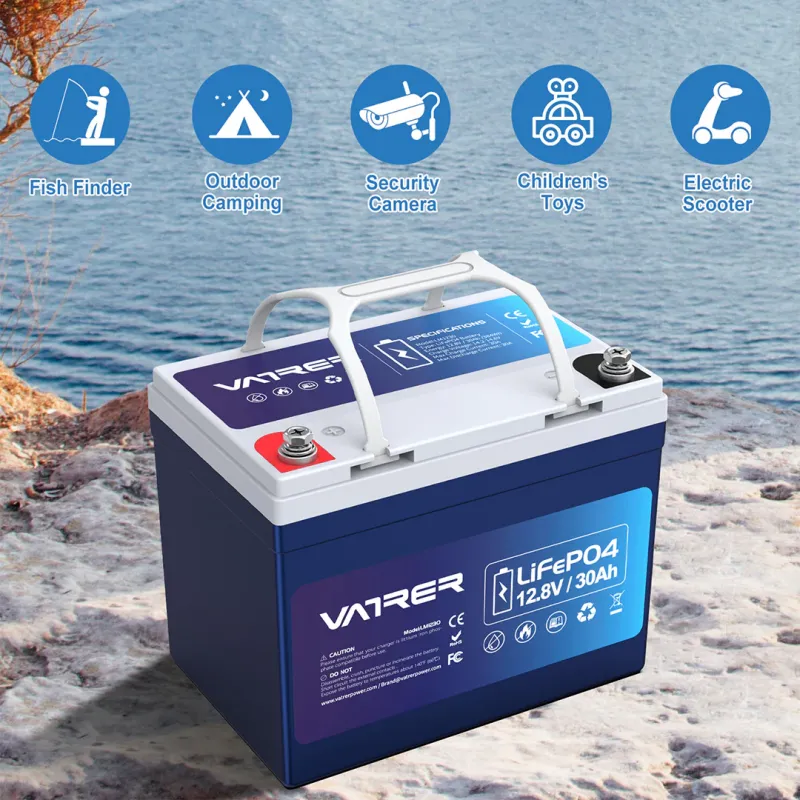 Vatrer 12V 30Ah LiFePO4 Lithium Rechargeable Battery – Featherweight 384Wh Deep Cycle Power for Kayak Trolling Motors, Fish Finders, Ice Fishing & Portable Solar