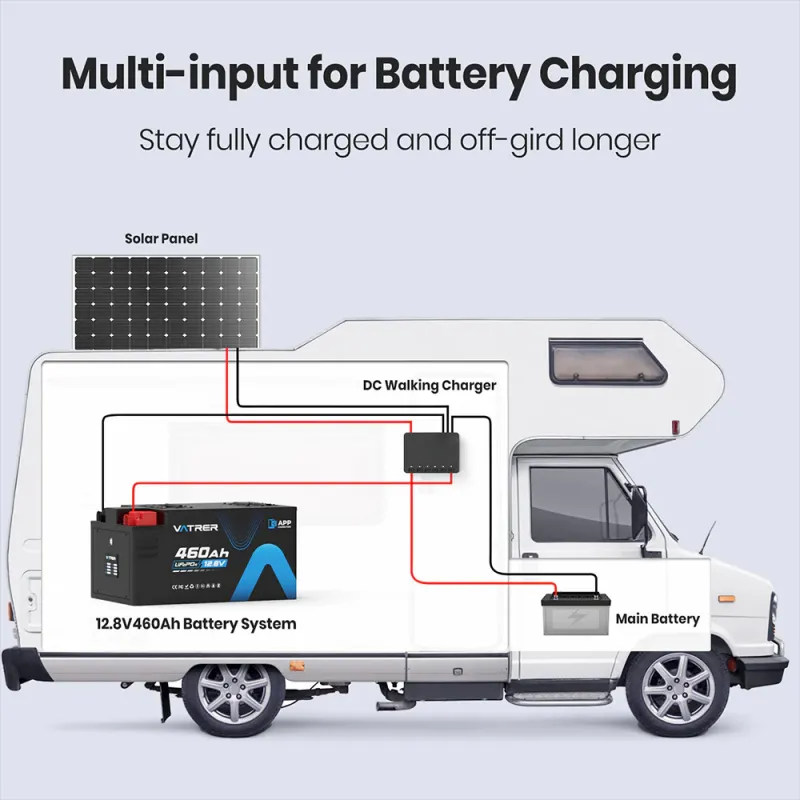Pair with high-power inverters and large solar arrays for the ultimate no-compromise off-grid lifestyle. Whether you’re running three roof A/Cs in summer, living full-time off-grid, or building a massive solar bank, the Vatrer 12V 460Ah Bluetooth battery delivers unmatched capacity, power, and reliability. Order now — stocked and ready to ship from lithiumion-batteries.com!