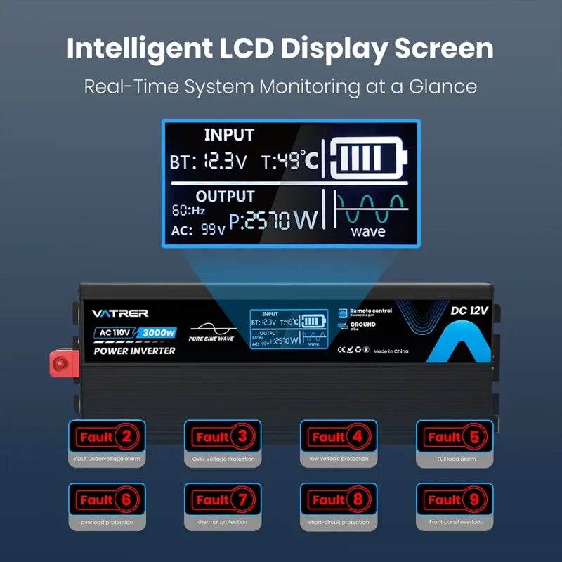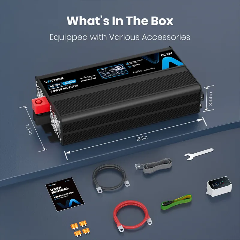 Vatrer 3000W Pure Sine Wave Inverter 12V DC to 110V/120V AC – Clean, Reliable Power Solution for RV, Solar, Marine, Home Backup & Off-Grid Systems