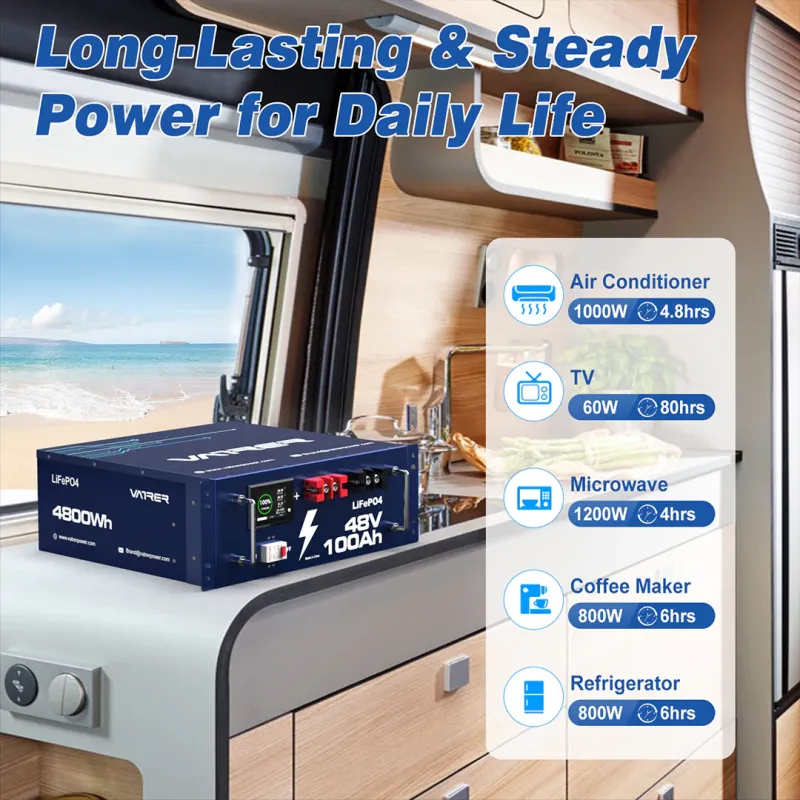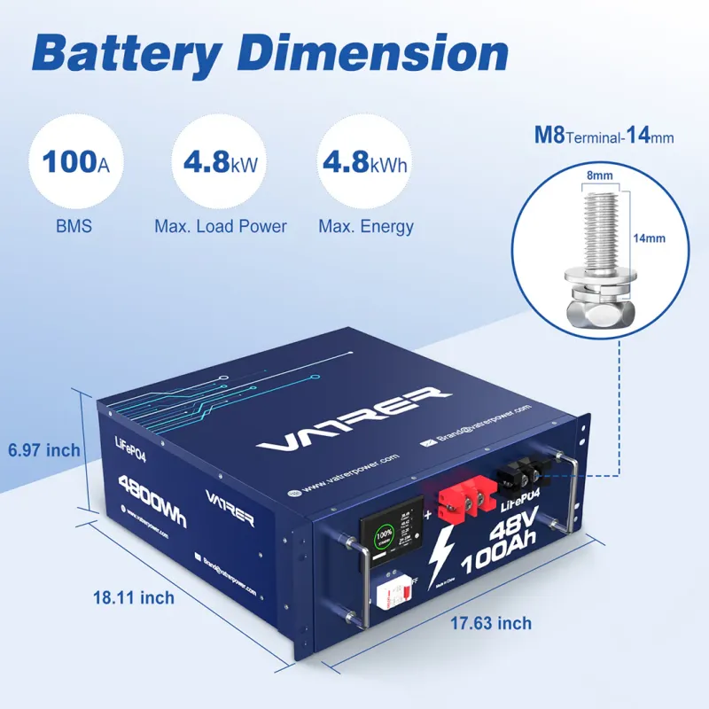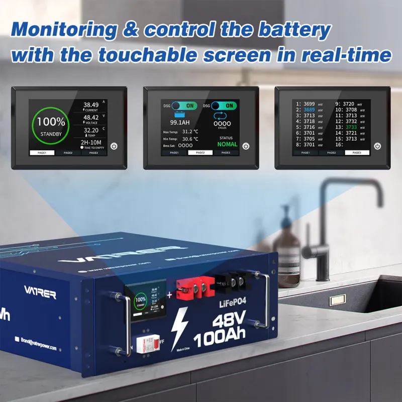 Product Description for Vatrer 48V 100AH LiFePO4 Server Rack Lithium Solar Battery, w/ Touchable Smart Display & Mobile APP