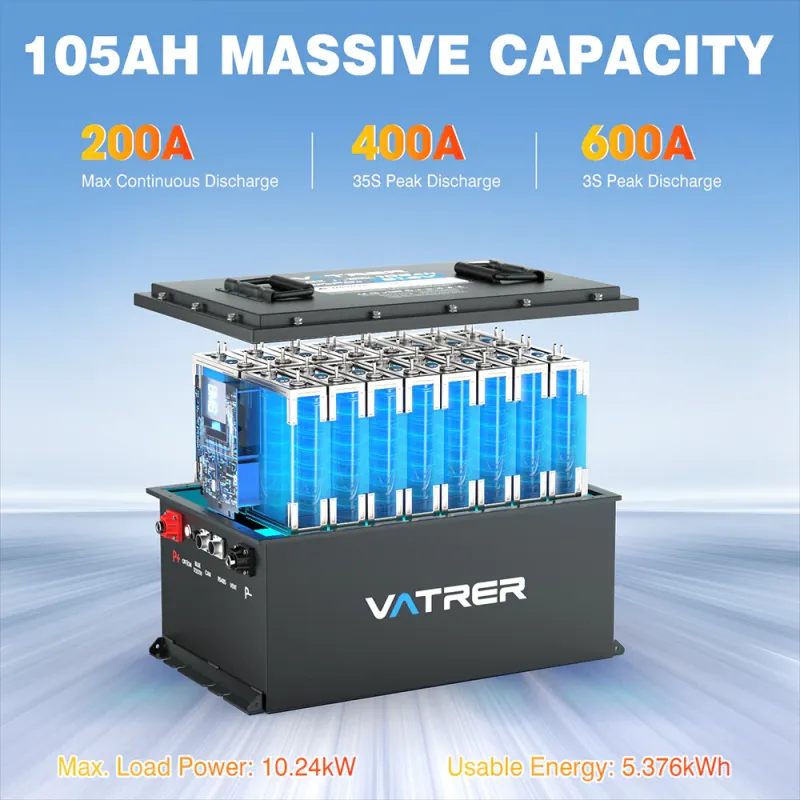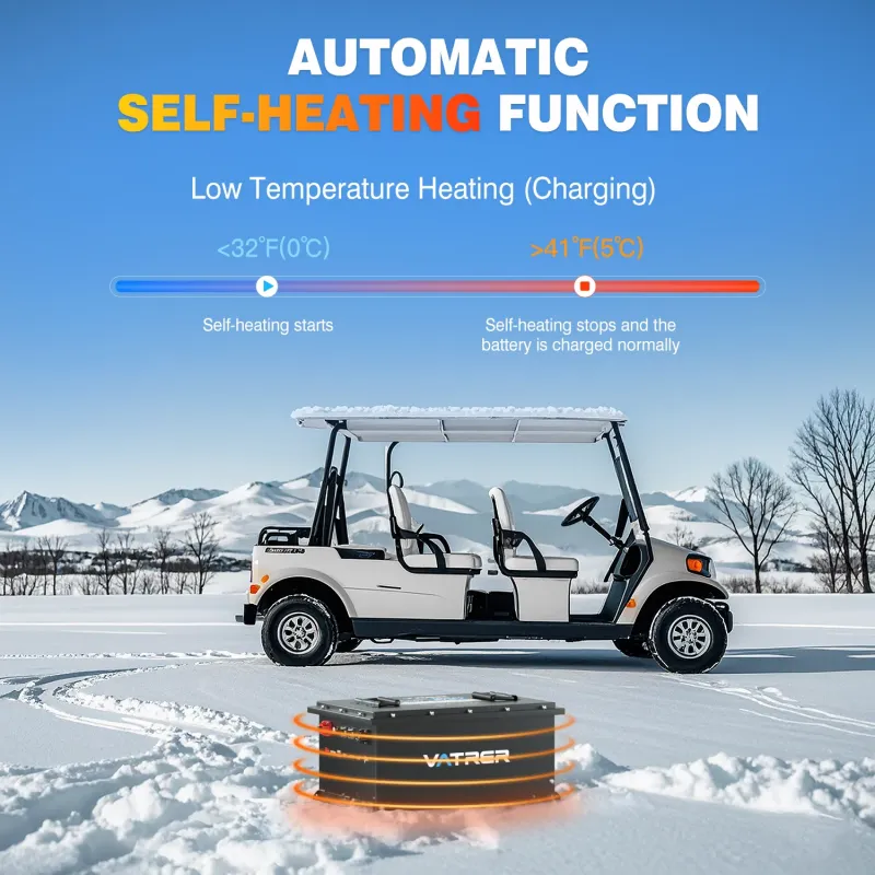 Product Description for Vatrer 48V 105Ah Lithium Heated Golf Cart Battery 200A BMS
