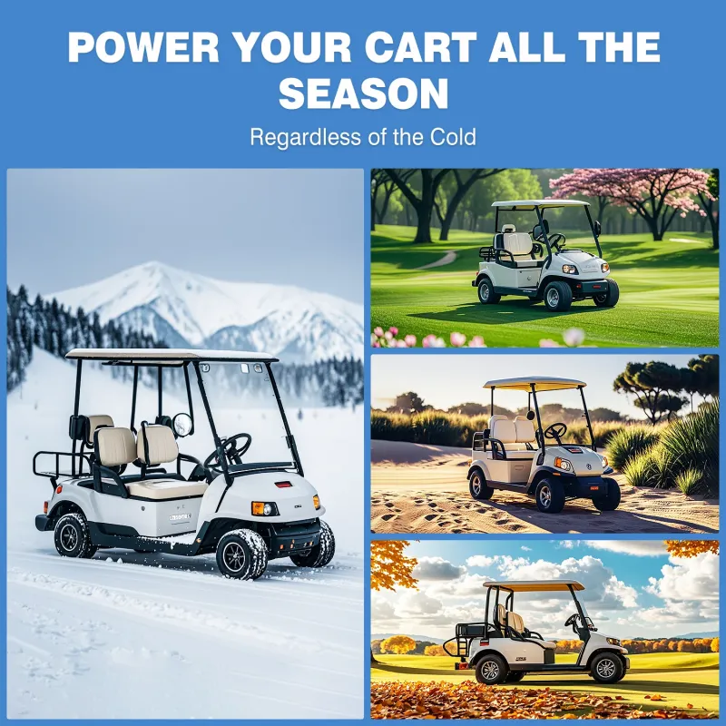 Finally — a golf cart battery that works in real winter. Drop it in, connect, and play 12 months a year. Order now — stocked and ready to ship from lithiumion-batteries.com!
