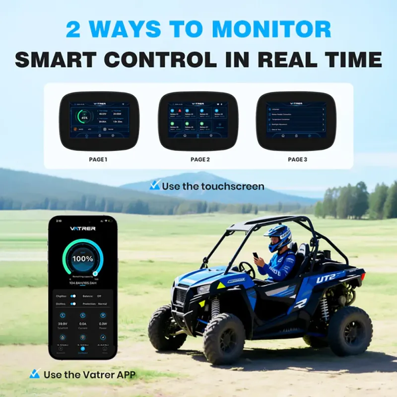 Unleash the full potential of your UTV or ATV with the Vatrer 48V 105Ah high-performance lithium battery – engineered for the toughest trails, mud, and races. Delivering a massive 5.376 kWh with an insane 300A continuous / 600A peak discharge, this drop-in replacement obliterates lead-acid in weight, acceleration, and runtime. Built with automotive-grade cells, an ultra-rugged IP67 case, and Bluetooth monitoring, it’s the ultimate upgrade for Polaris RZR, Can-Am Maverick, Kawasaki KRX, Yamaha YXZ, and nearly every modern 48V performance side-by-side.