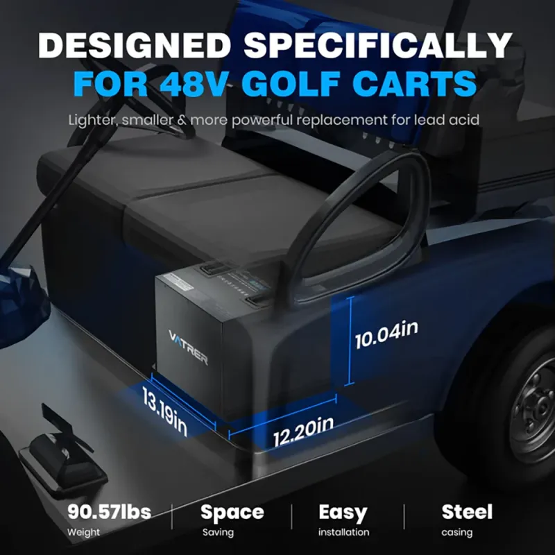 Drop it in, connect, and go — no modifications needed for most 48V systems. Whether you’re upgrading a vintage golf cart, powering a commercial floor machine, or squeezing big power into a tiny space, the Vatrer Mini delivers full-size performance in a miniature package. Order now — stocked and ready to ship from lithiumion-batteries.com!