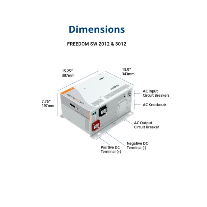Elevate your mobile and off-grid power systems with the Xantrex Freedom SW 3000W 12V Inverter/Charger (Part No: 815-3012), a high-capacity unit combining a 3000W pure sine wave inverter, 150A multi-stage battery charger, and 30A automatic transfer switch. Designed for RV camping, marine applications, and off-grid solar setups, this inverter/charger delivers clean, stable power for sensitive electronics, heavy appliances, and tools while rapidly recharging 12V batteries from shore or generator power. Advanced features like generator support, customizable charging profiles, and compatibility with the System Control Panel (SCP) ensure precise control and unmatched reliability. Key Features: