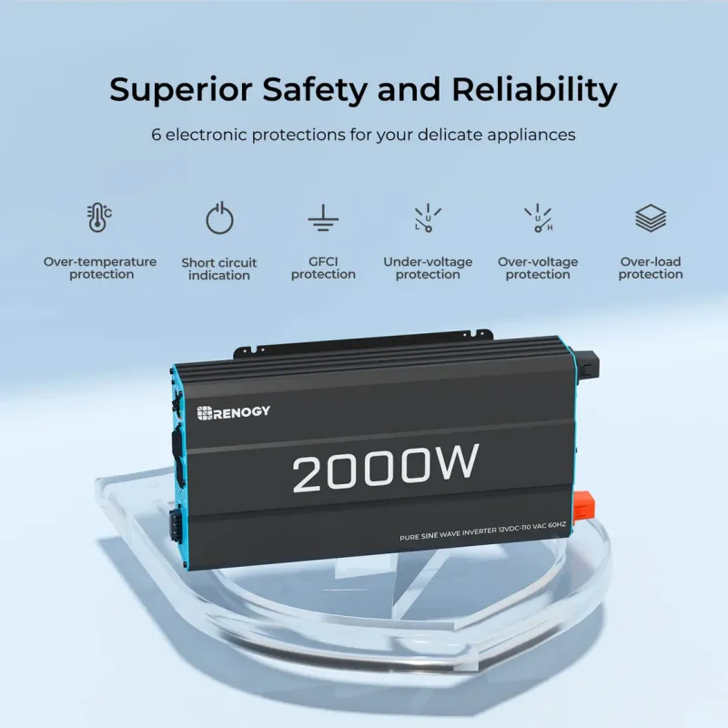 Product Description for Renogy 2000W 12V Pure Sine Wave Inverter