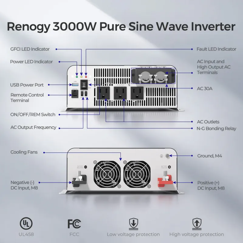 Pair this inverter with our premium lithium-ion batteries and solar panels for a complete, high-efficiency power ecosystem. Whether powering RV adventures, marine voyages, or solar backups, the Renogy PUH 12V 1000W delivers unmatched reliability, smart connectivity, and seamless UPS functionality. Order now and experience Renogy’s innovative power excellence—stocked and ready to ship from lithiumion-batteries.com!