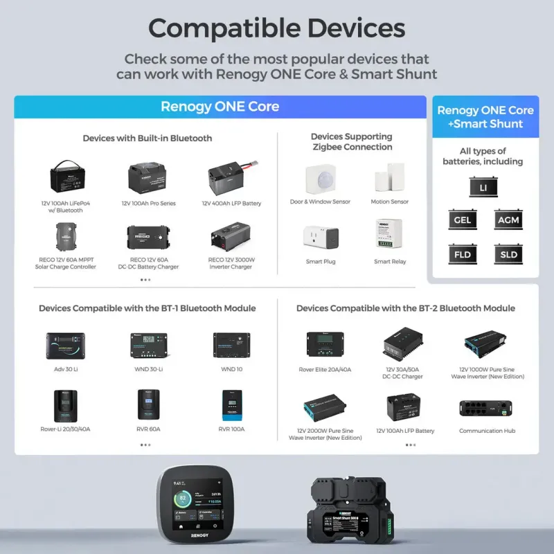 • Versatile Compatibility: Works with Renogy ONE M1 ecosystem, lithium/AGM/flooded batteries, and third-party devices via RS485; expandable for van life, cabins, boats, or tiny homes.